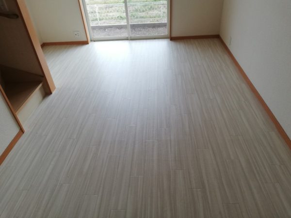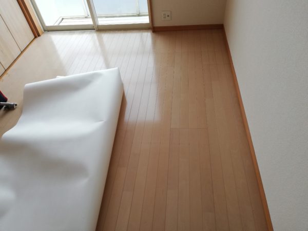 ↓↓フローリングの上にCFを張り付けていきます↓↓